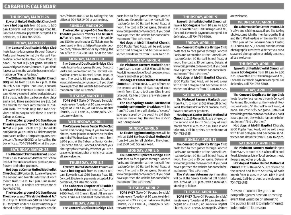 CORRECTIONS: the Independent tribune wants to promptly correct any erroneous or inaccurate information published. email corrections to Mark plemmons at mplemmons@ independenttribune.com.