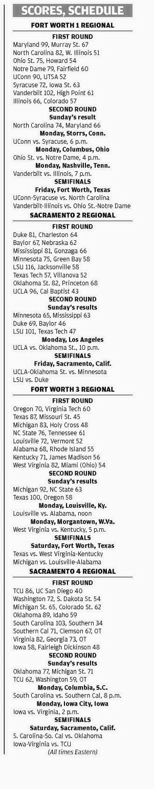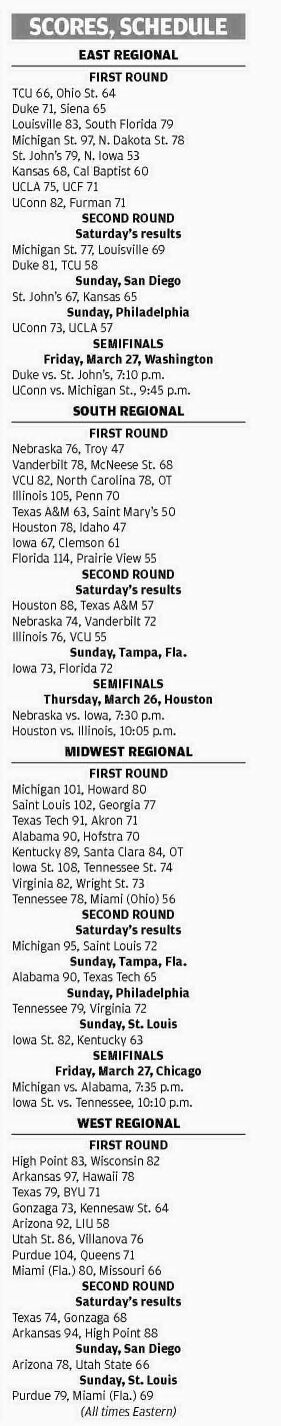 NCAA MEN'S BASKETBALL TOURNAMENT| SUNDAY'S ROUNDUP