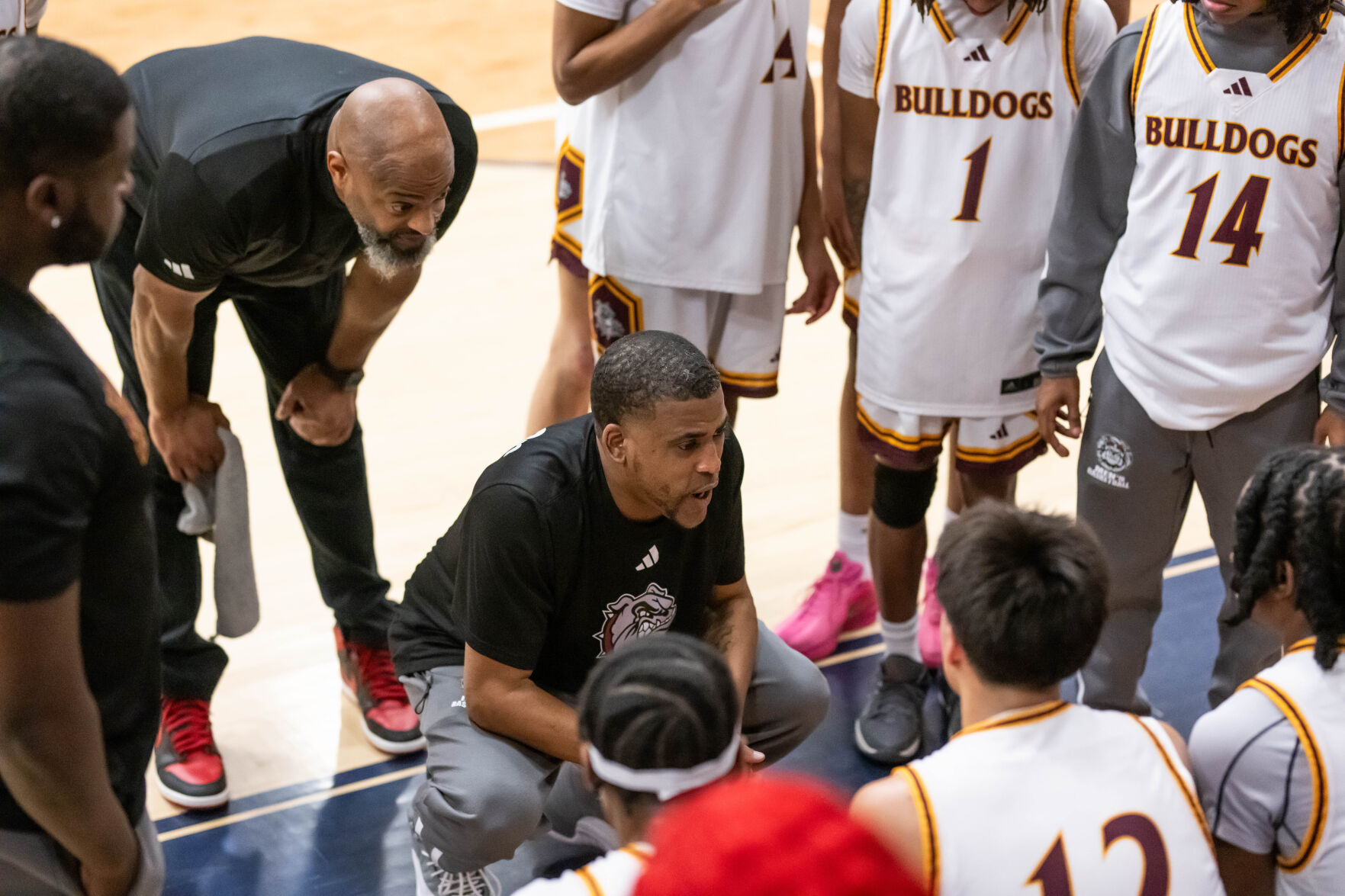 Coach Lavar Batts, shown here during SPC Boys Basketball Tournament, is looking for his third state title at Jay M. Robinson.
