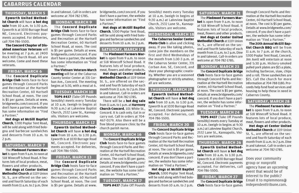 CORRECTIONS: the Independent tribune wants to promptly correct any erroneous or inaccurate information published. email corrections to Mark plemmons at mplemmons@ independenttribune.com.
